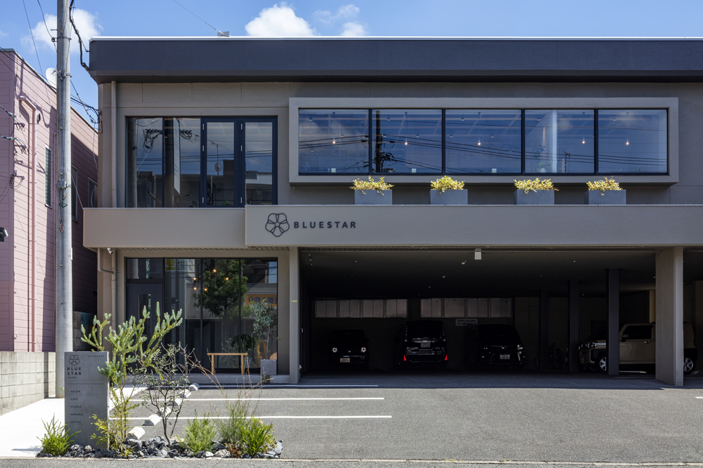 店舗1Fは駐車場、店舗2Fで株式会社ブルースターの5事業を展開することになりました。